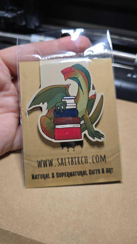 Dragon With Stack of Books Magnetic Bookmark